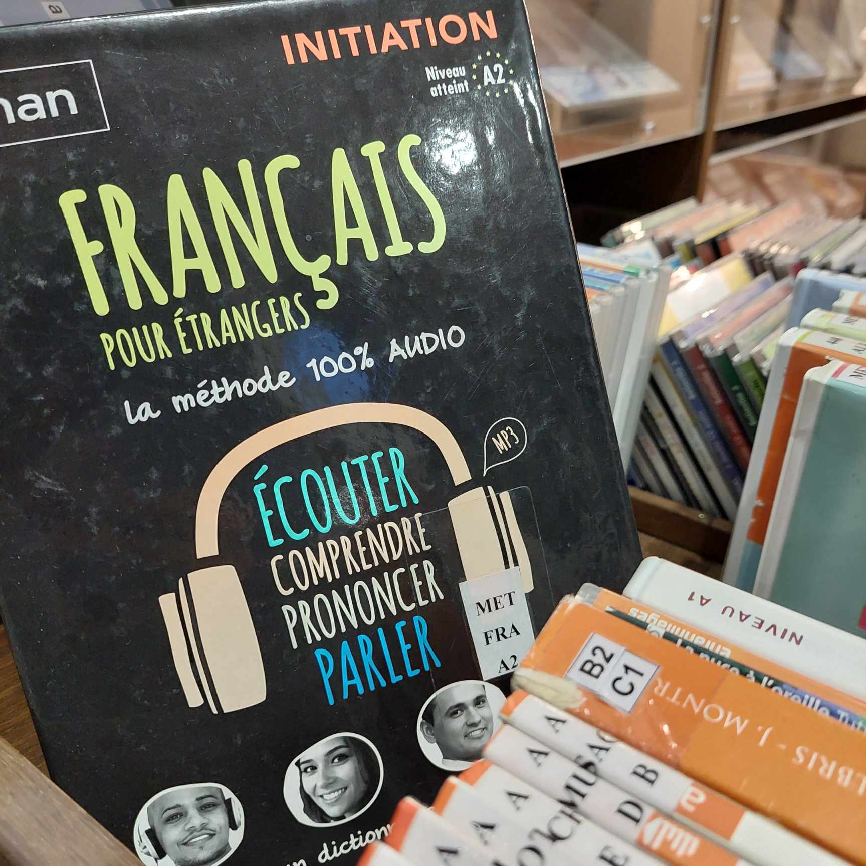 Intégrée dans l’espace jeunesse, la bibliothèque de l’apprenant est un espace dédié à l’apprentissage du français où sont proposés des manuels pour la préparation aux examens DELF/DALF, TCF, TEF, des méthodes d’apprentissage du français langue étrangère, des livres en français facile classés par niveaux selon le cadre européen commun de référence : A1, A2, B1, B2, le matériel pédagogique, linguistique et autres outils complémentaires pour l’apprentissage et l’enseignement du français langue étrangère (FLE).